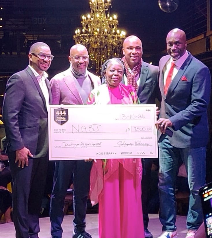 NABJ-Philadelphia has met the $10,000 match for the Michael I. Days Scholarship thanks to Sulaiman W. Rahman and the brothers of the 444 Charitable Birthday Celebration who put us over the top. During an unforgettable night with four unforgettable friends on March 15, 2026, Sulaiman presented us with an oversized replica of a $7,500 check from proceeds for the event.