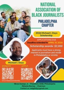 NABJ-Philadelphia is awarding two $2,000 scholarships to undergraduate and graduate college students in honor of our inaugural president Michael I. Days, who passed last October.